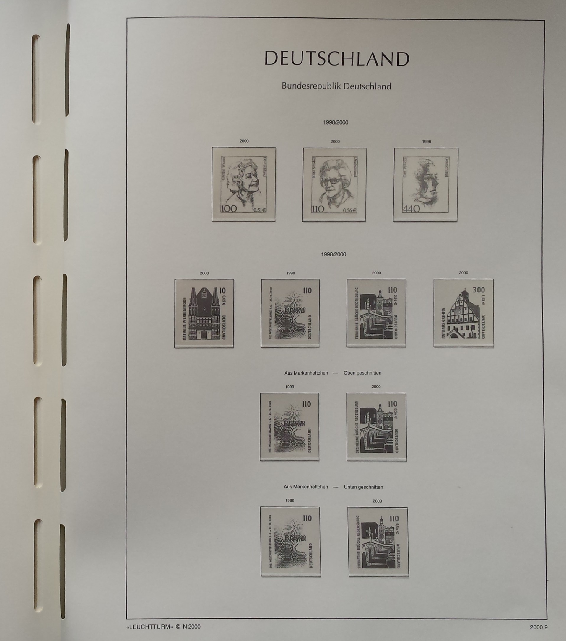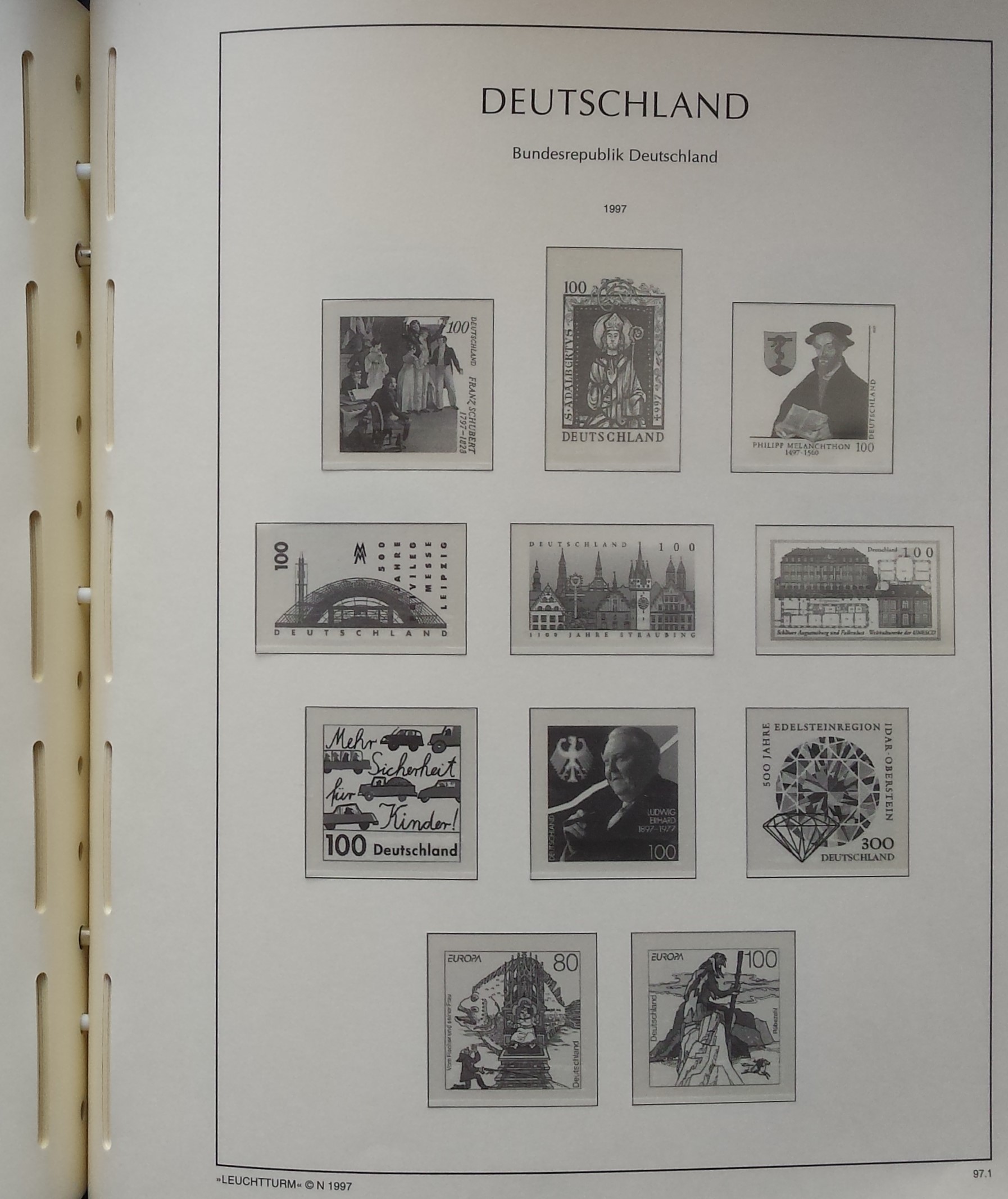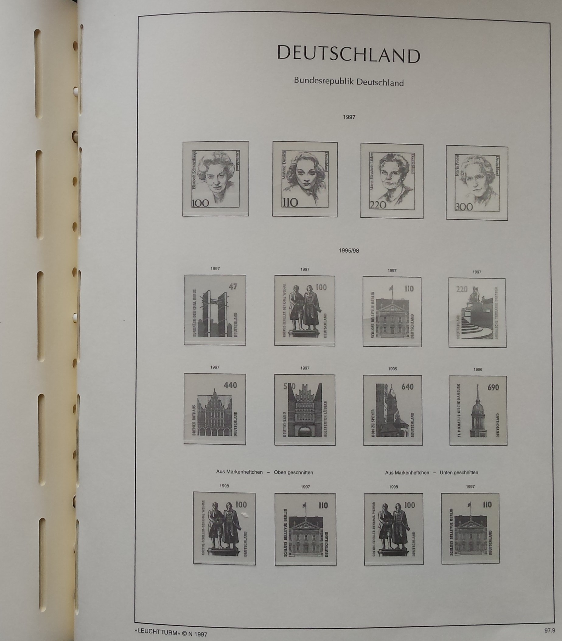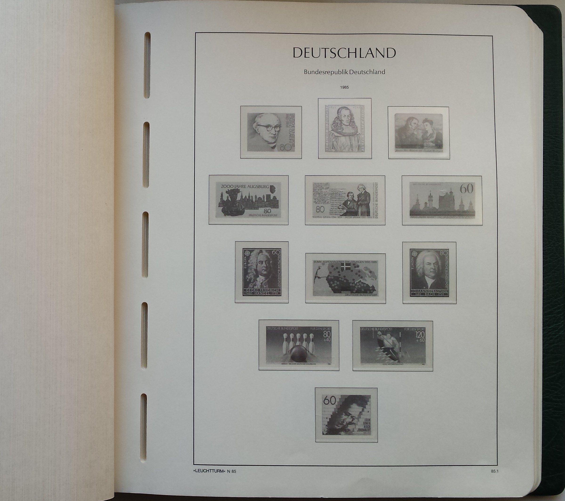 Žalios spalvos LEUCHTTURM albumas 1985-2000 m. Vokietijos pašto ženklams