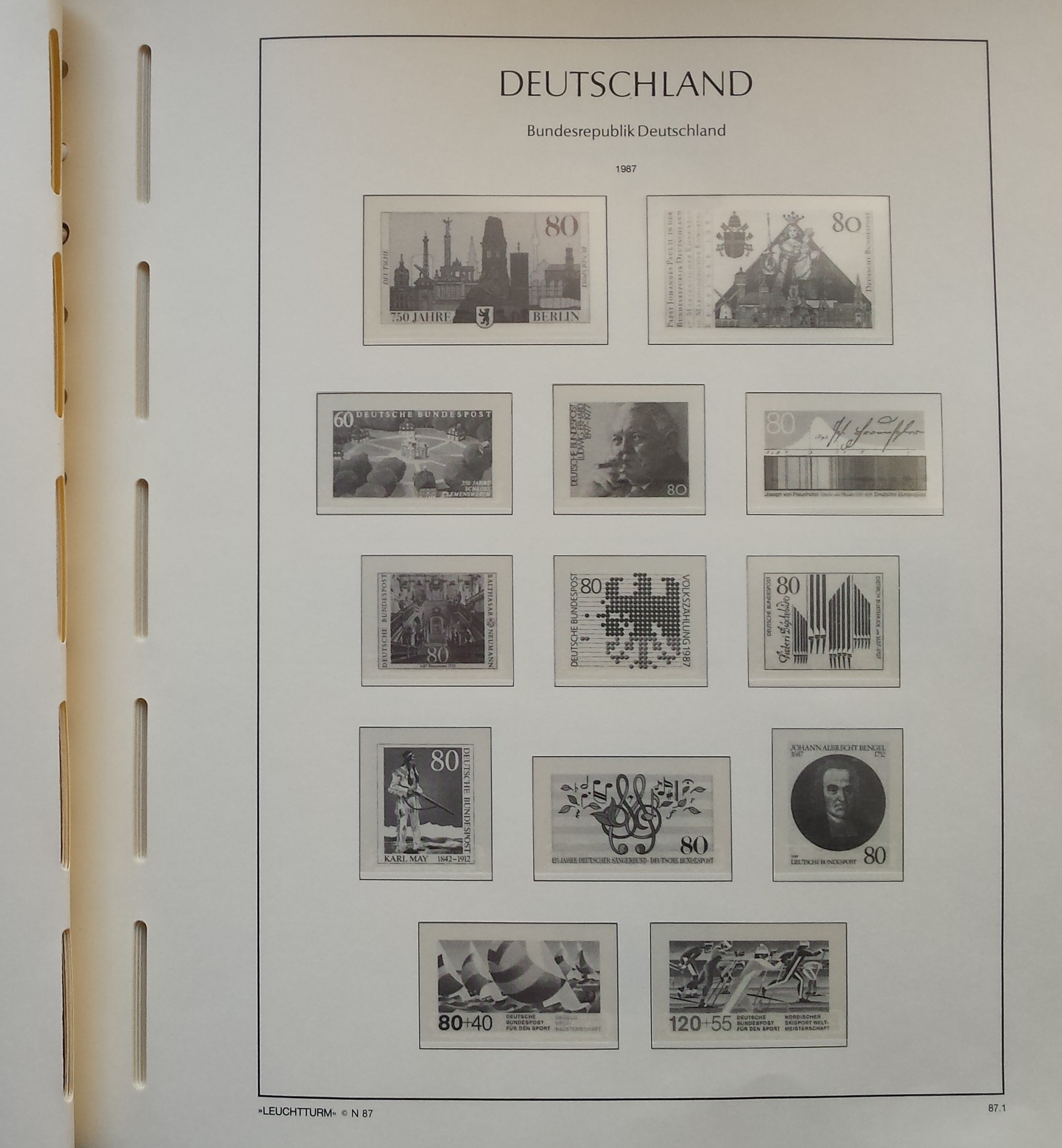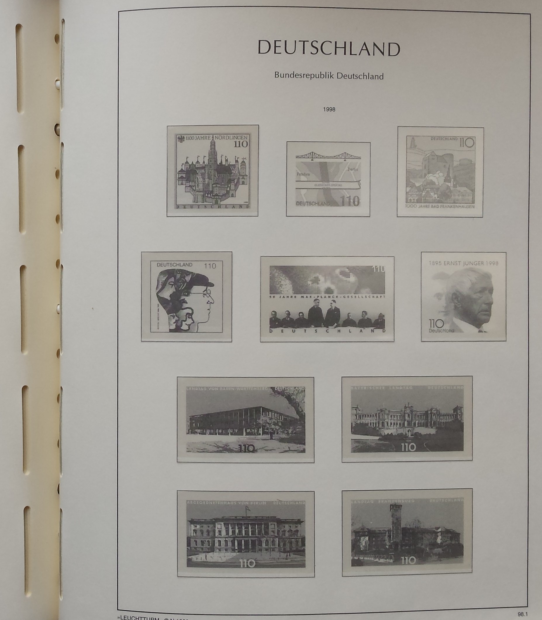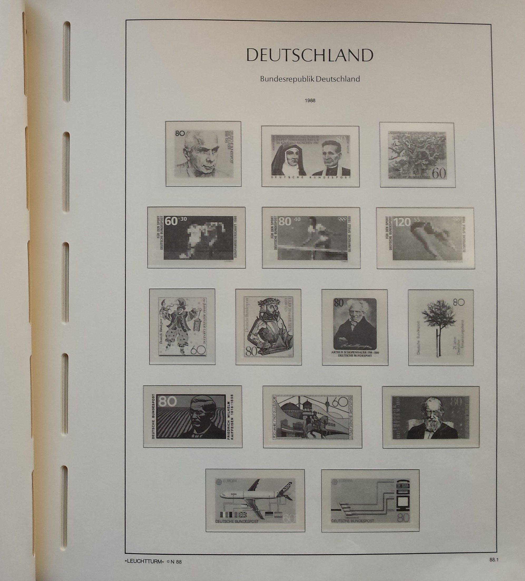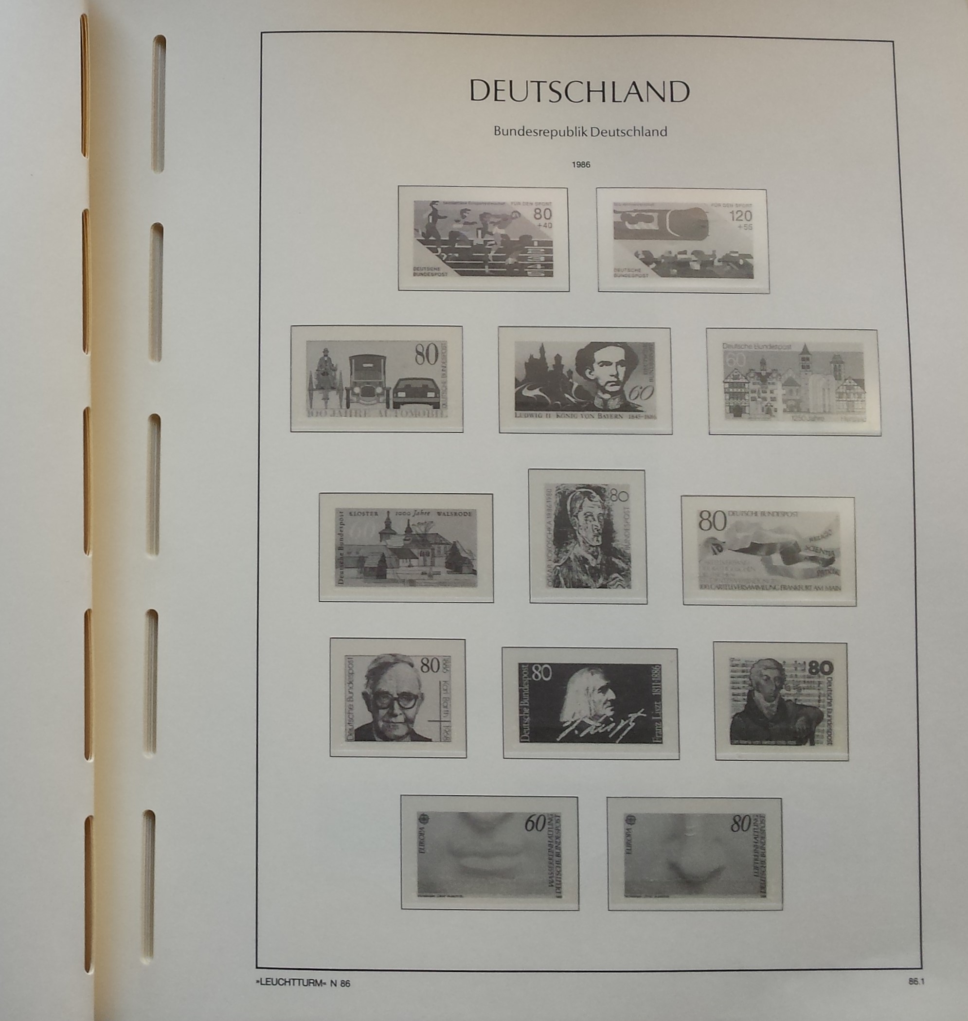 Žalios spalvos LEUCHTTURM albumas 1985-2000 m. Vokietijos pašto ženklams