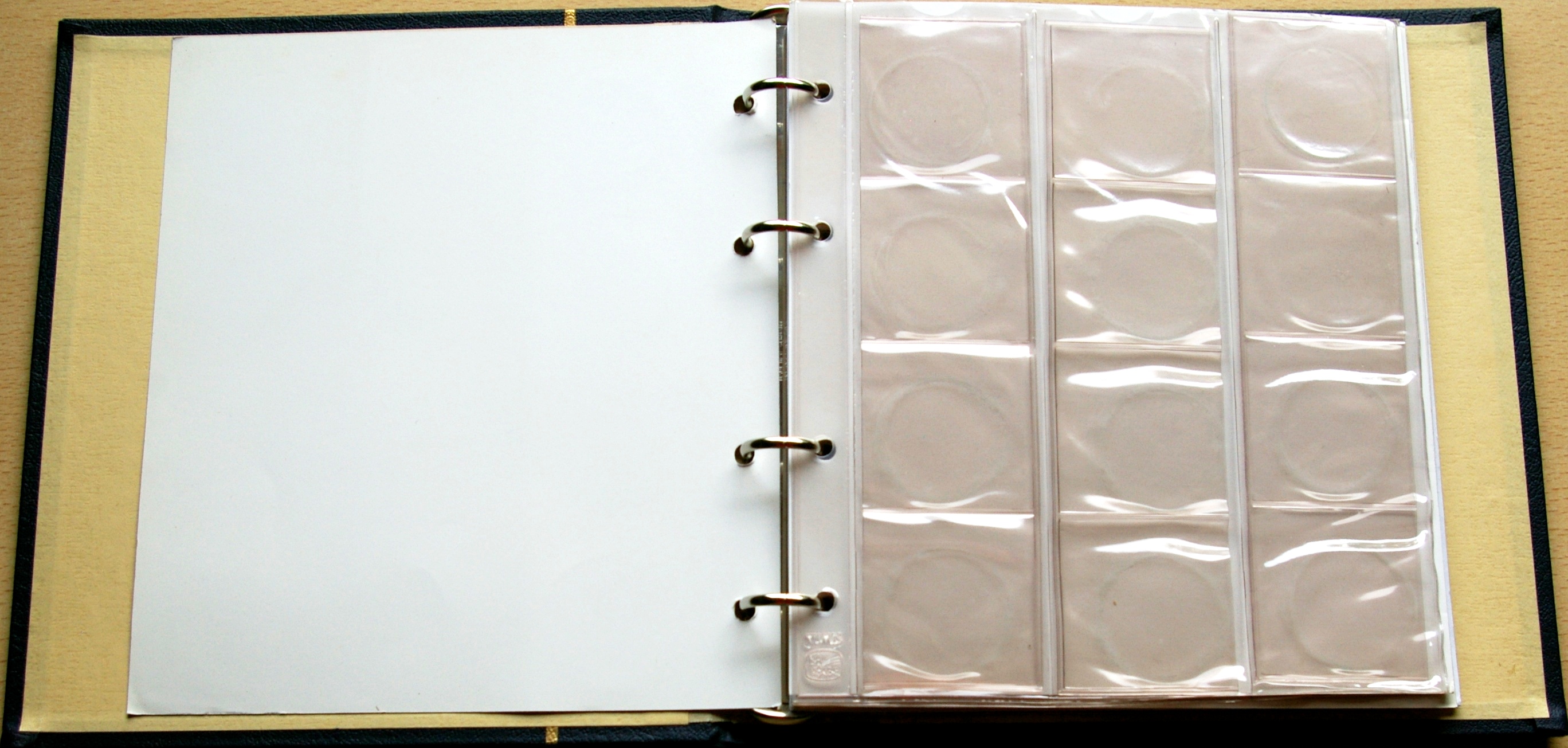 - – 3 įmautės, talpinančios po 12 monetų, kurių vienos kišenėlės monetai dydis 50 x 50 mm.
