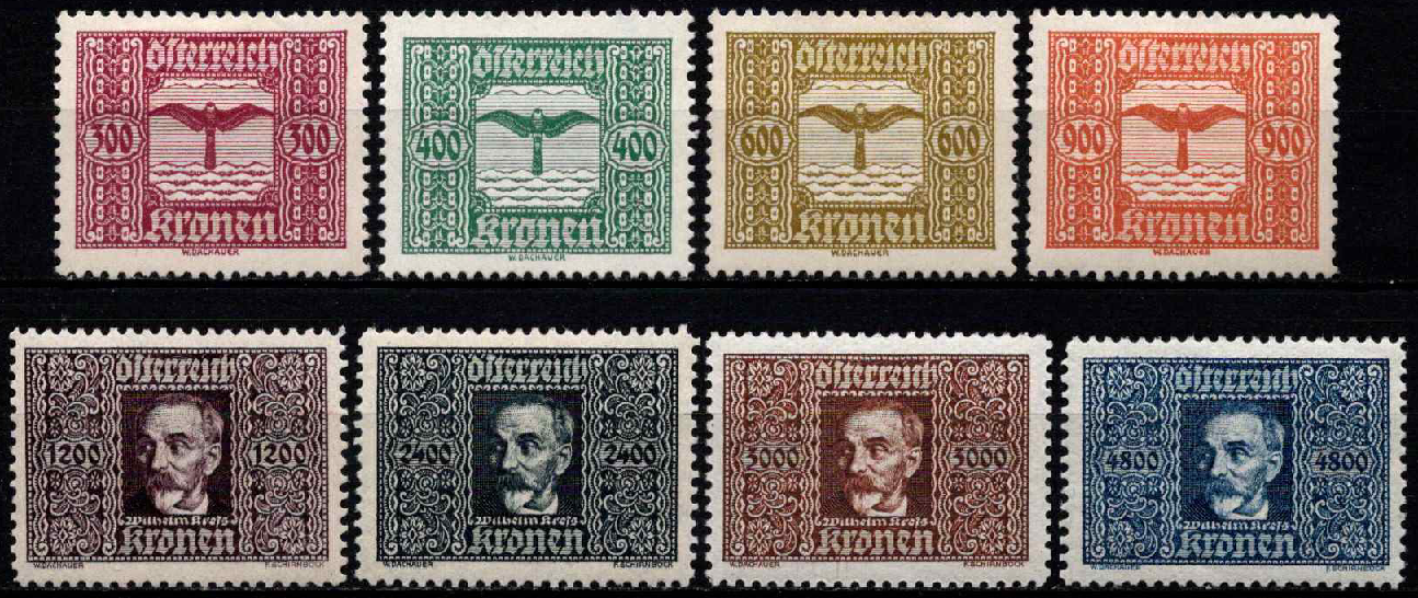Austrija, pilna oro pašto serija, MiNr 425-432 MNH**/MH*