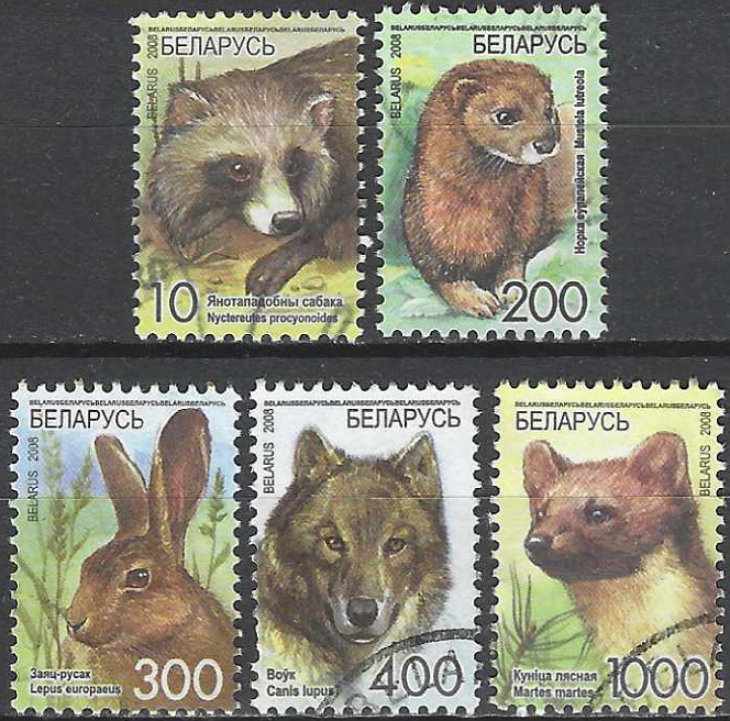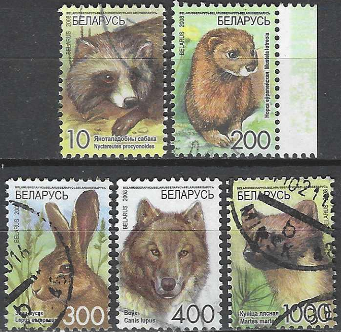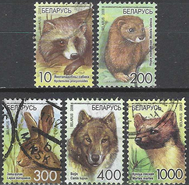 Standartinių pašto ženklų laida. Usūrinis šuo, europinė audinė, rudasis kiškis, vilkas, pušinė audinė