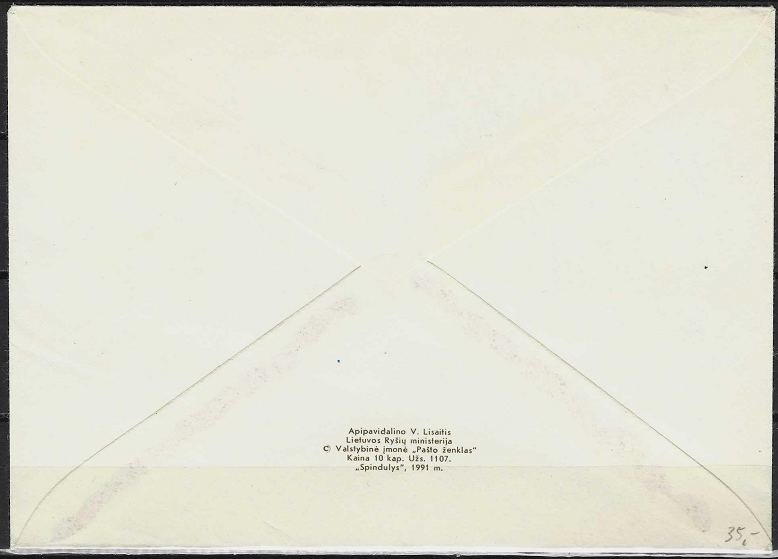 Lietuva, 1991m pirmos dienos vokas su MiNr 482-483 2Dx7