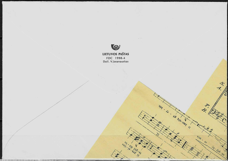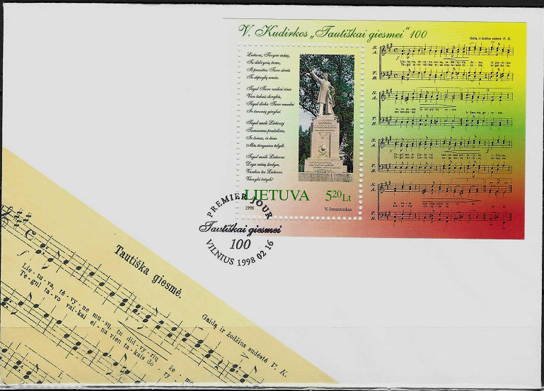 Lietuva, 1998m pirmos dienos vokas: „Lietuvos himnas” su bloku Nr. 13 MiNr 661 Dx1