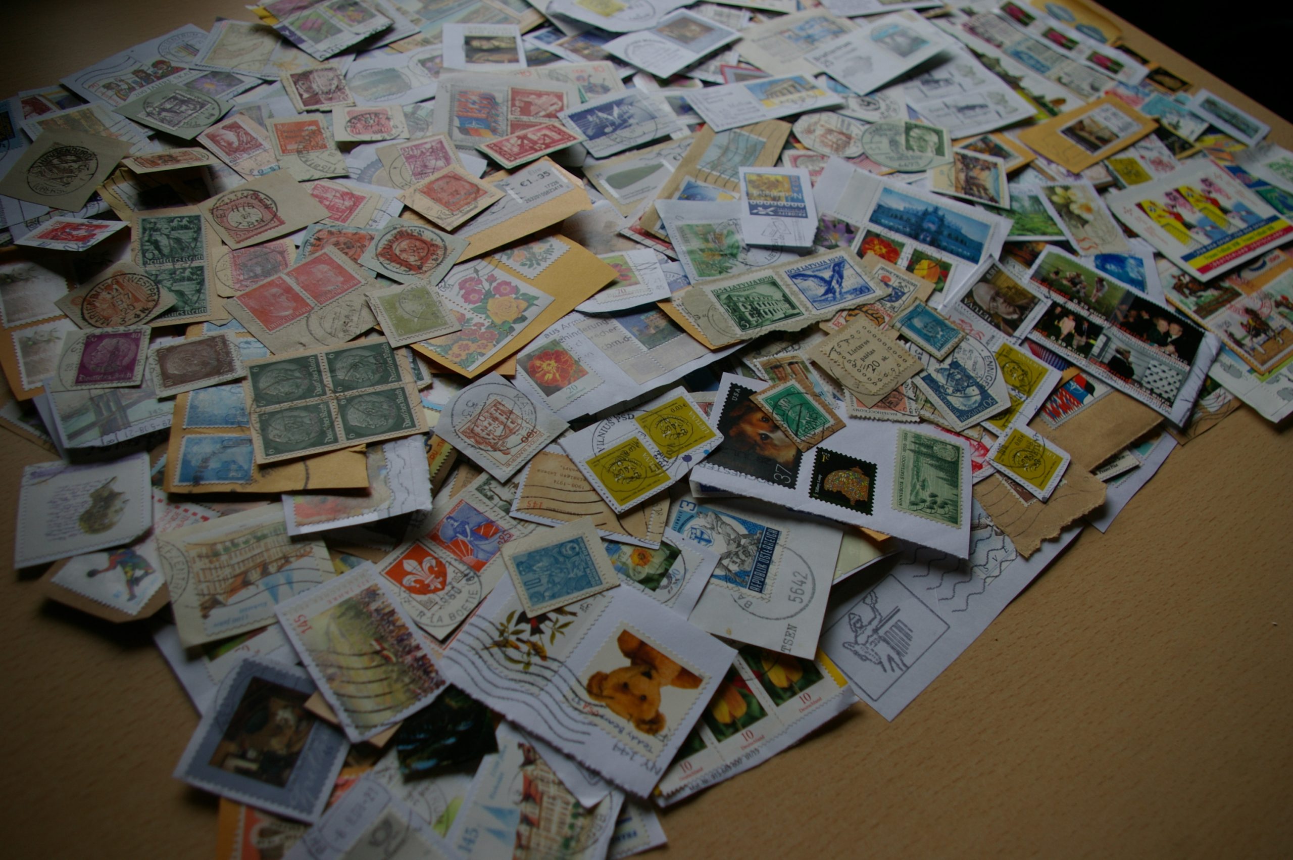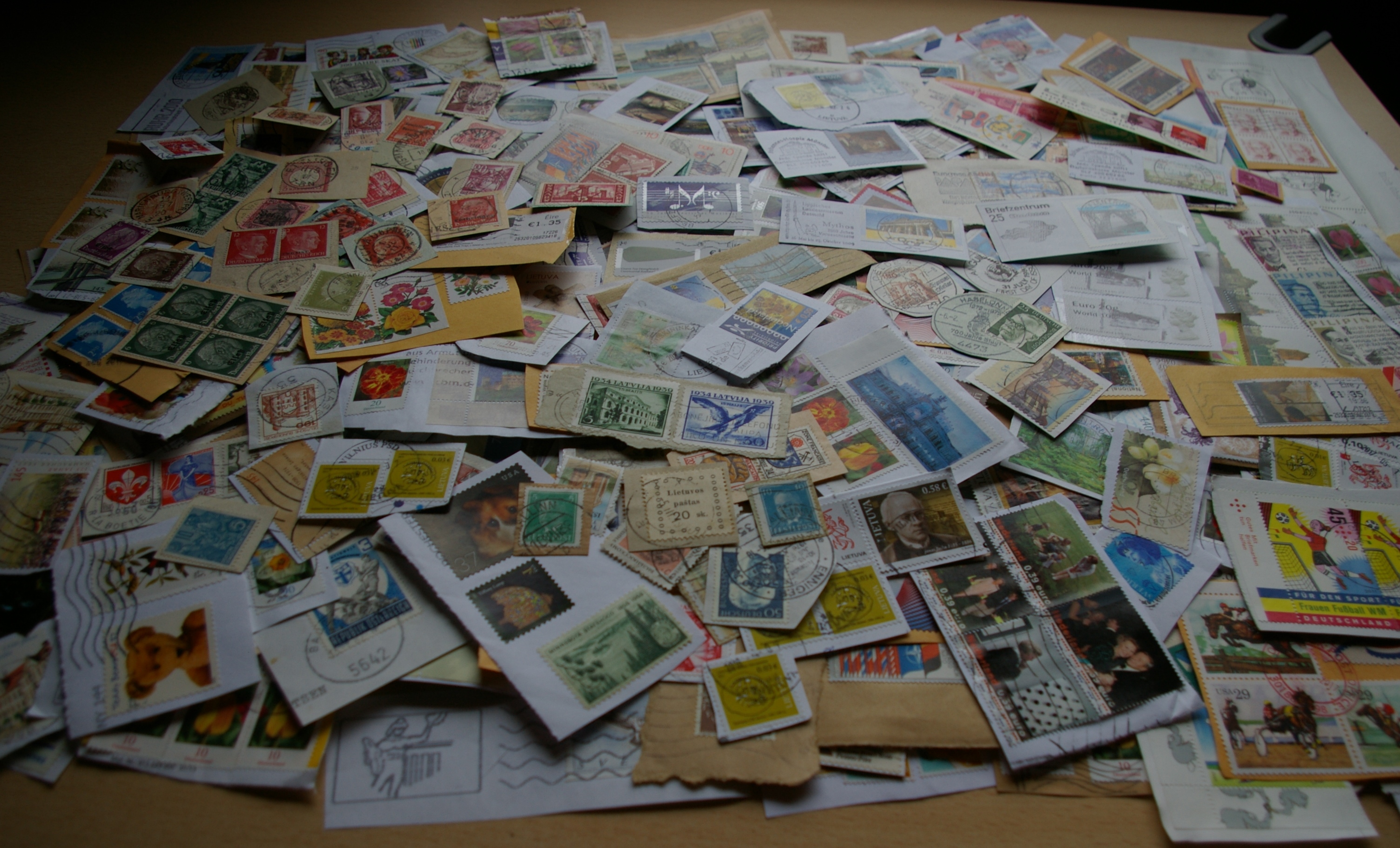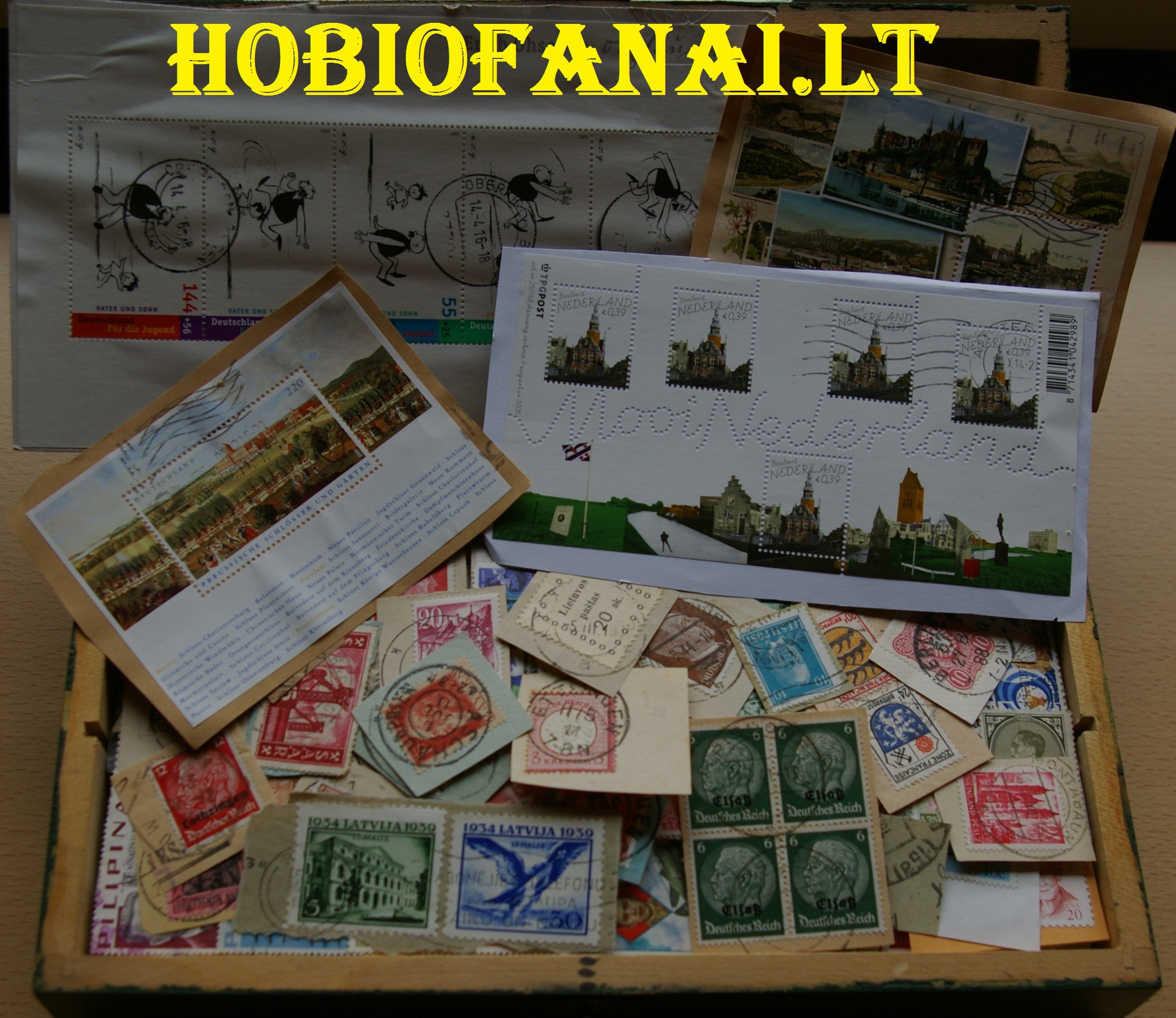 Lobių skrynelės turinys. Apie 950vnt pašto ženklų ant voko dalies