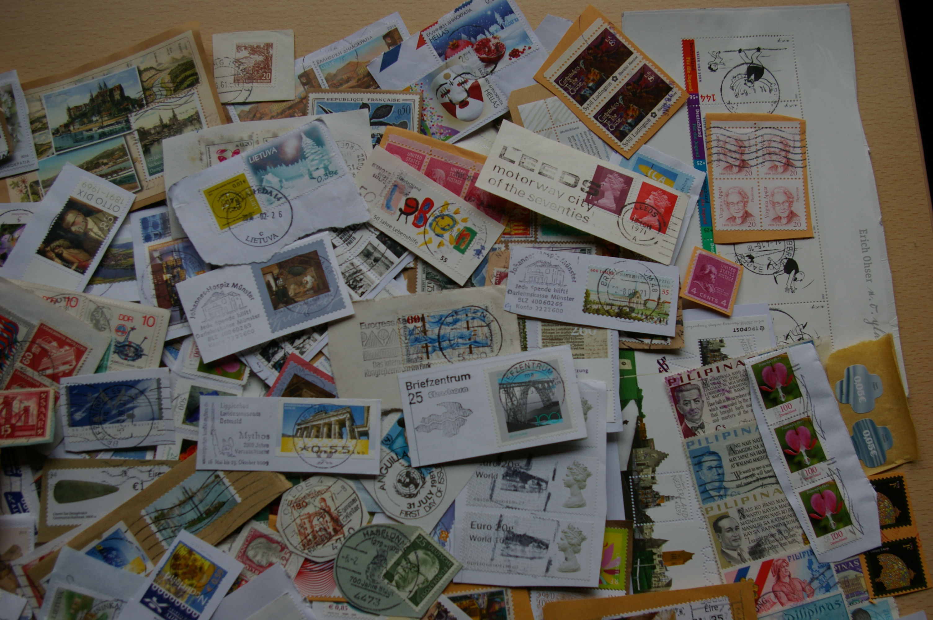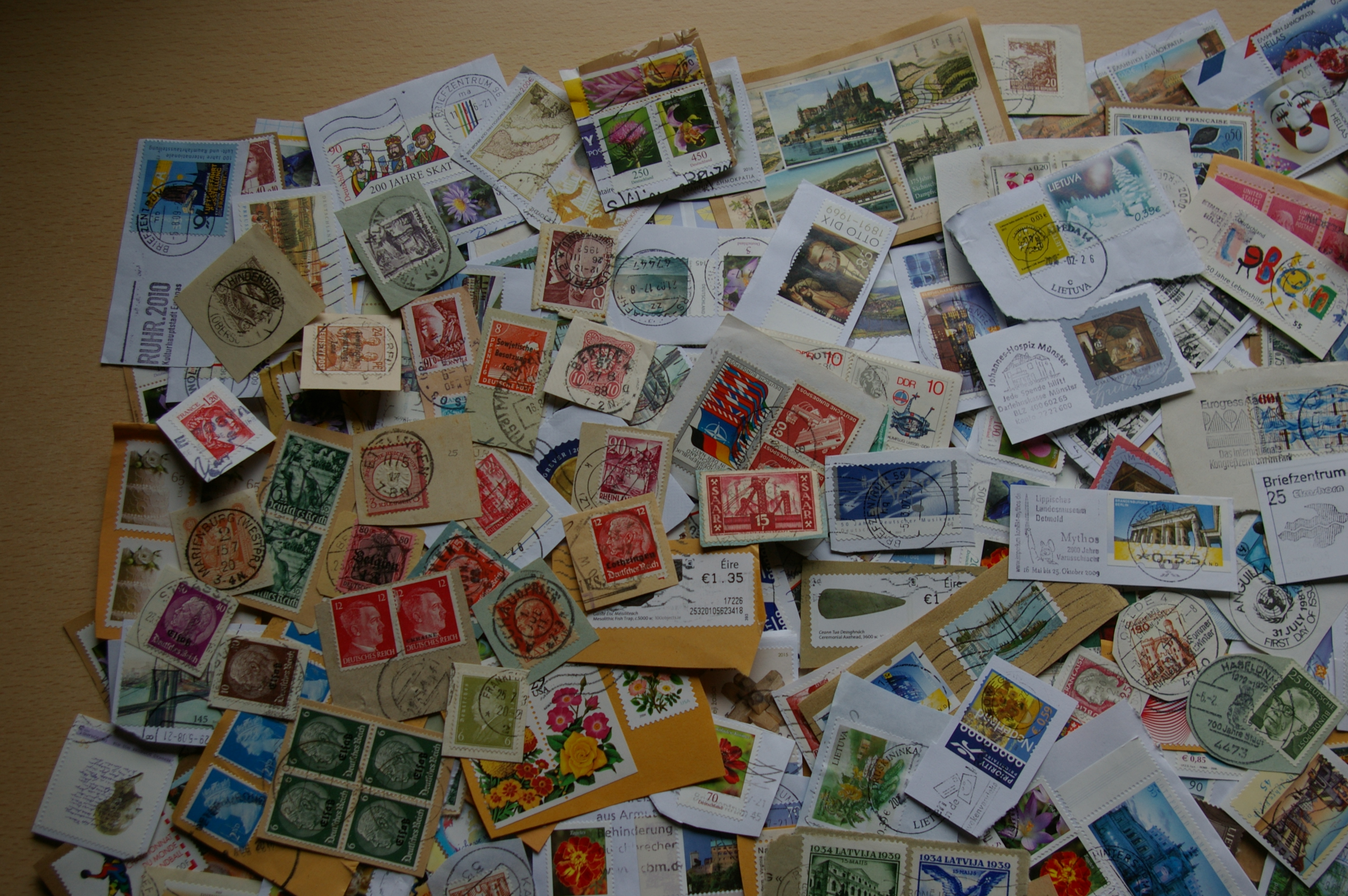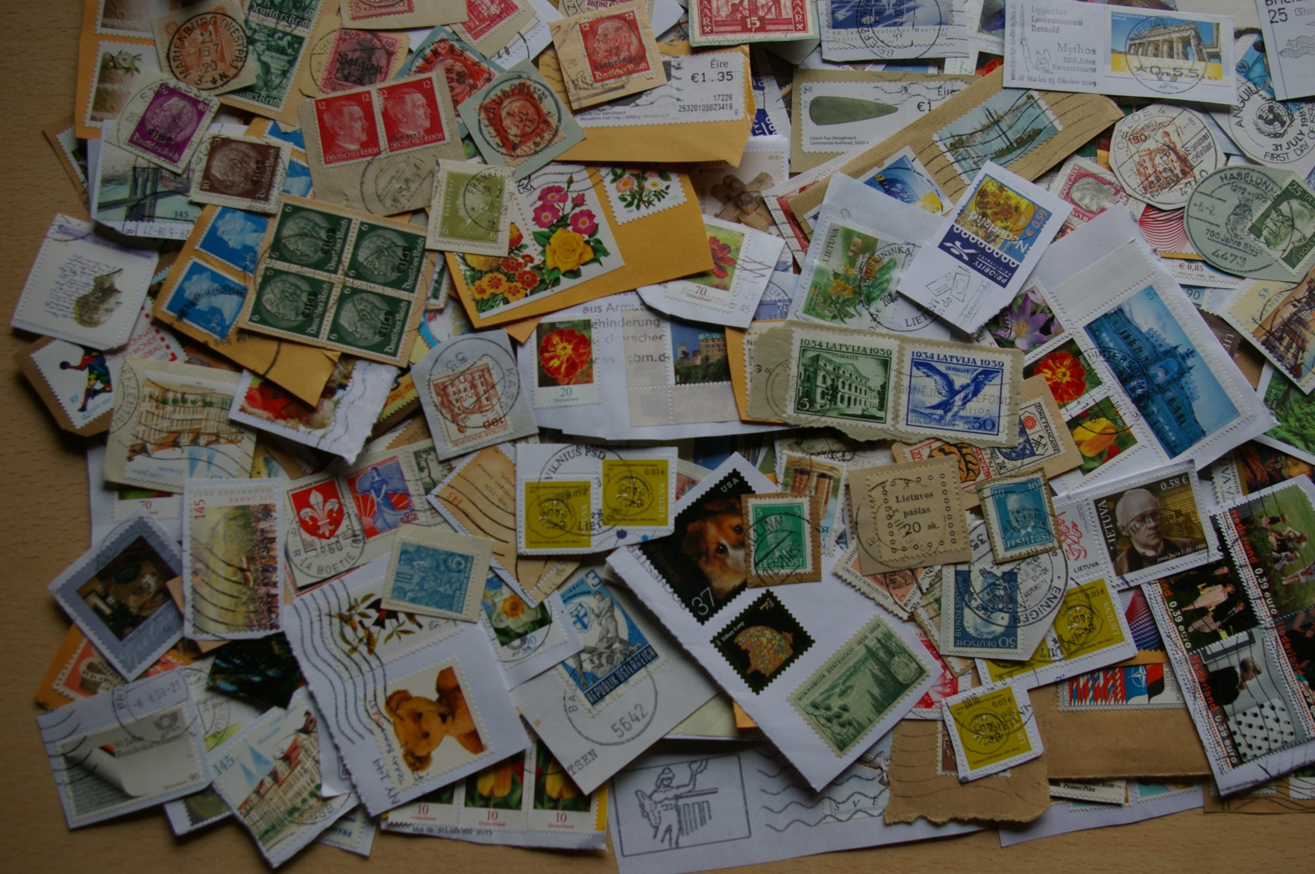 Lobių skrynelės turinys. Apie 950vnt pašto ženklų ant voko dalies