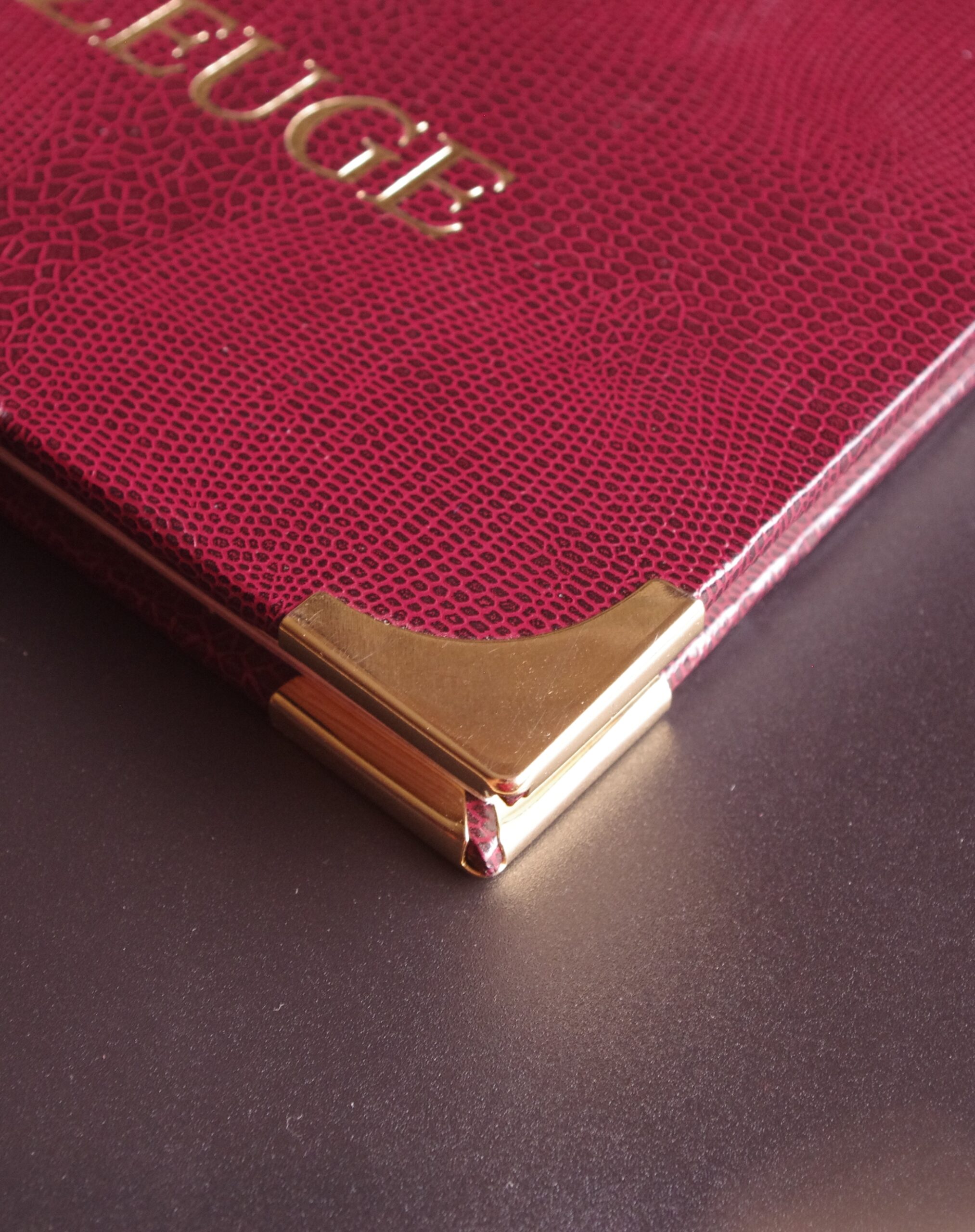 - – Gyvatės odos imitacijos viršelis su metalu kaustytais kampais