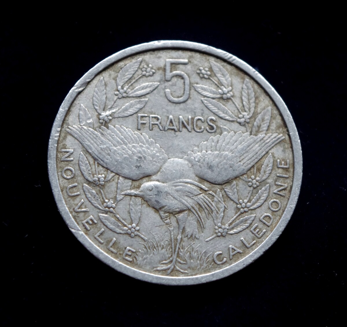 Naujoji Kaledonija, Prancūzijos užjūrio teritorija, 5 frankų moneta. Paukštis kagu