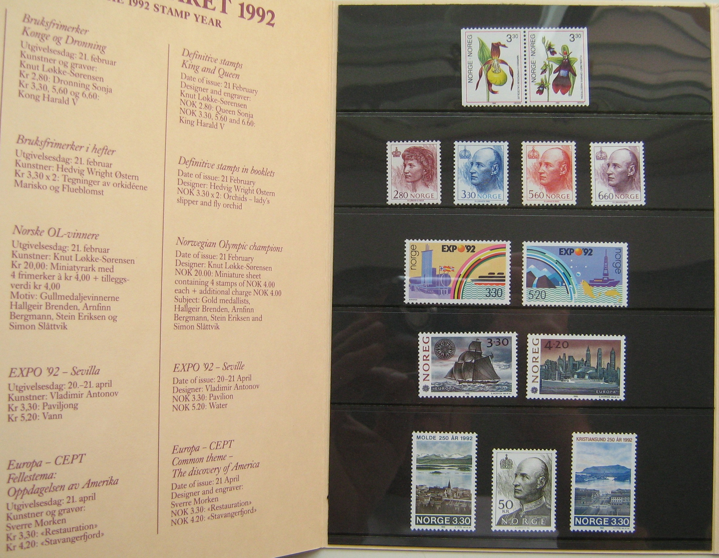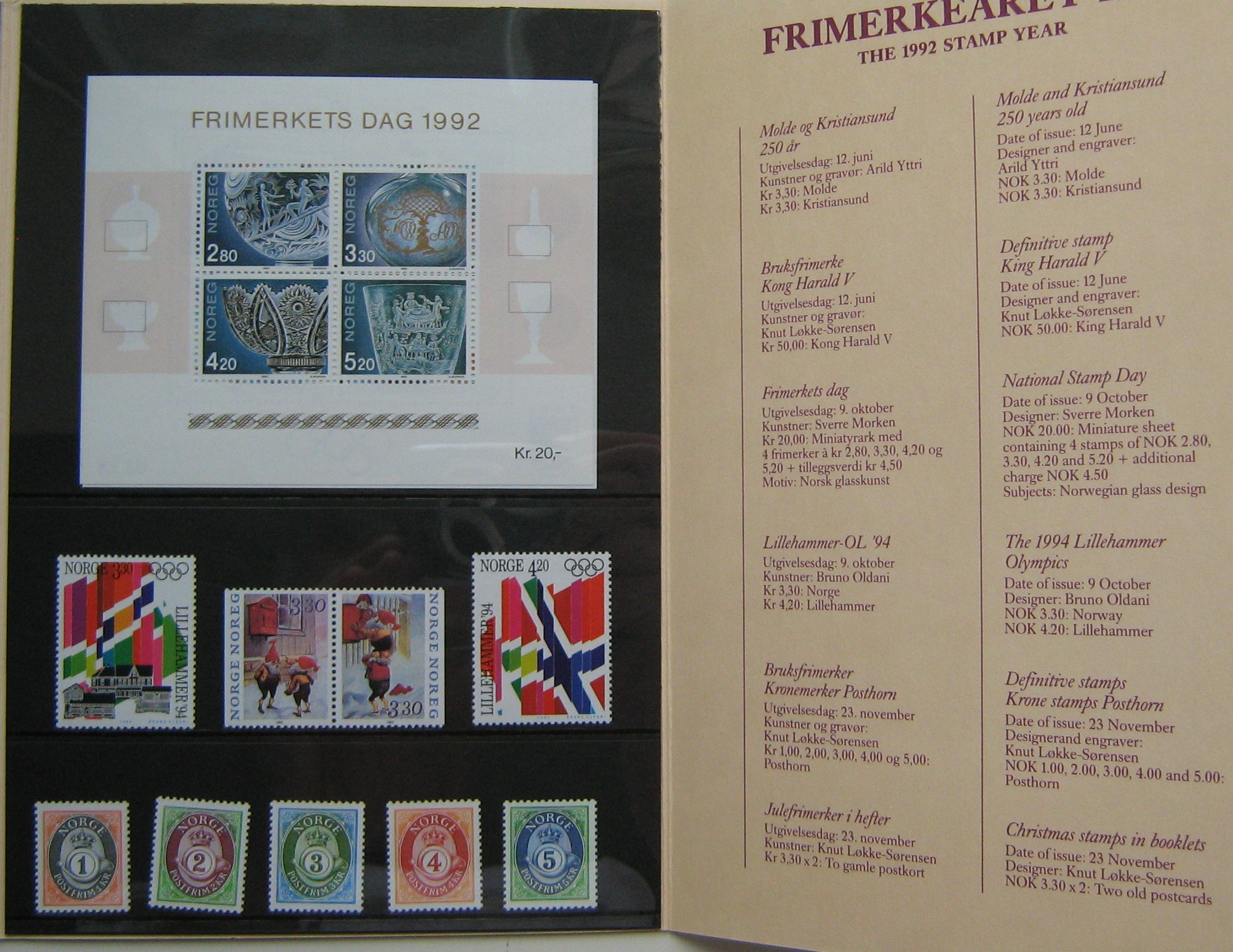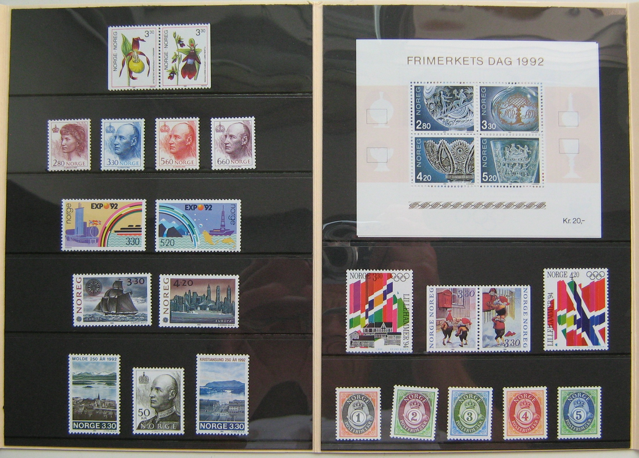 Pilna 1992 m. Norvegijos pašto ženklų kolekcija originaliame buklete
