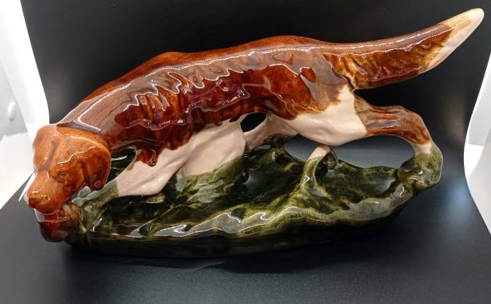 Porcelianinė statulėlė „Šuo su laimikiu”