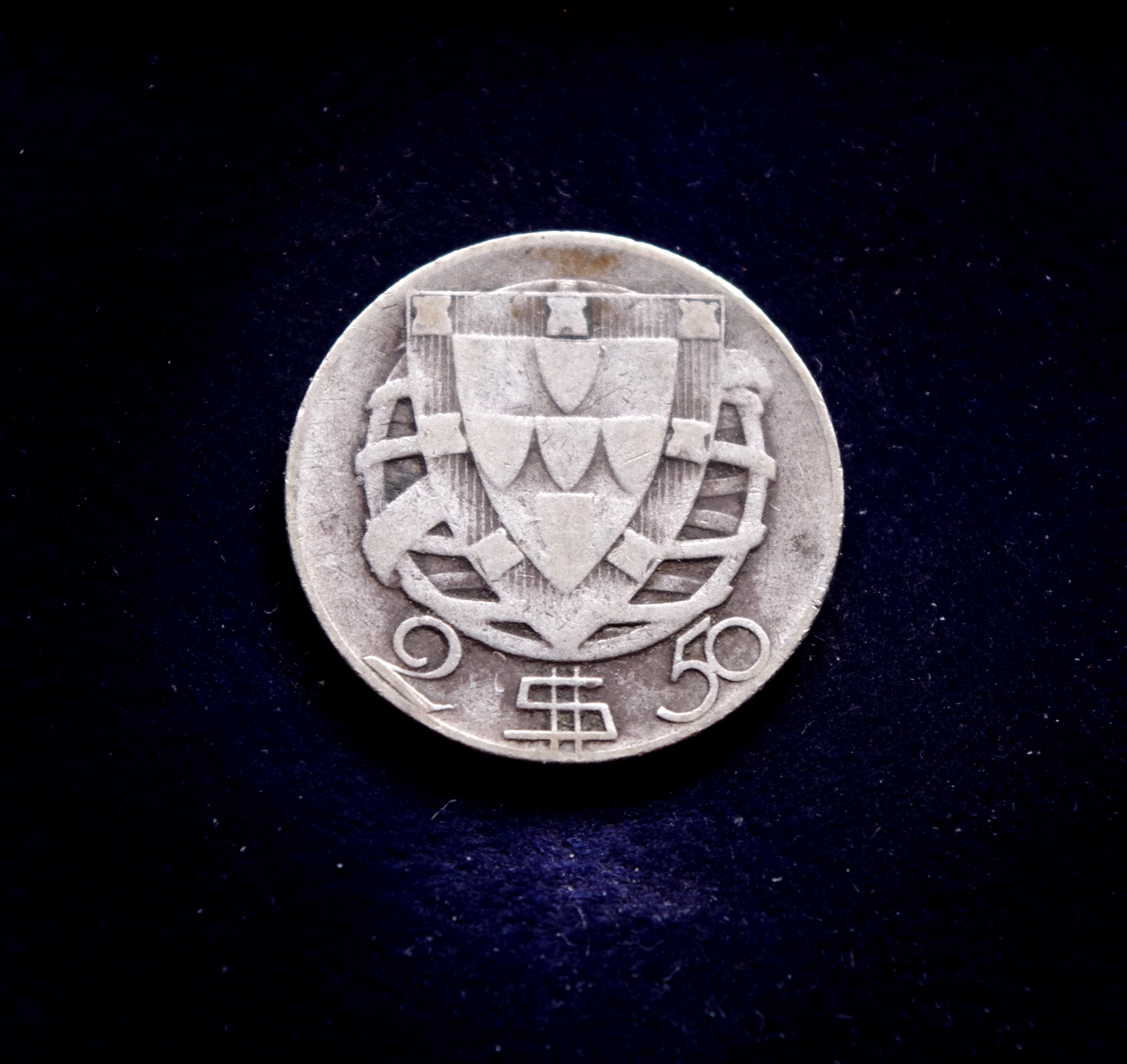 Portugalija, SIDABRINIAI 2,5 eskudo 1947m E
