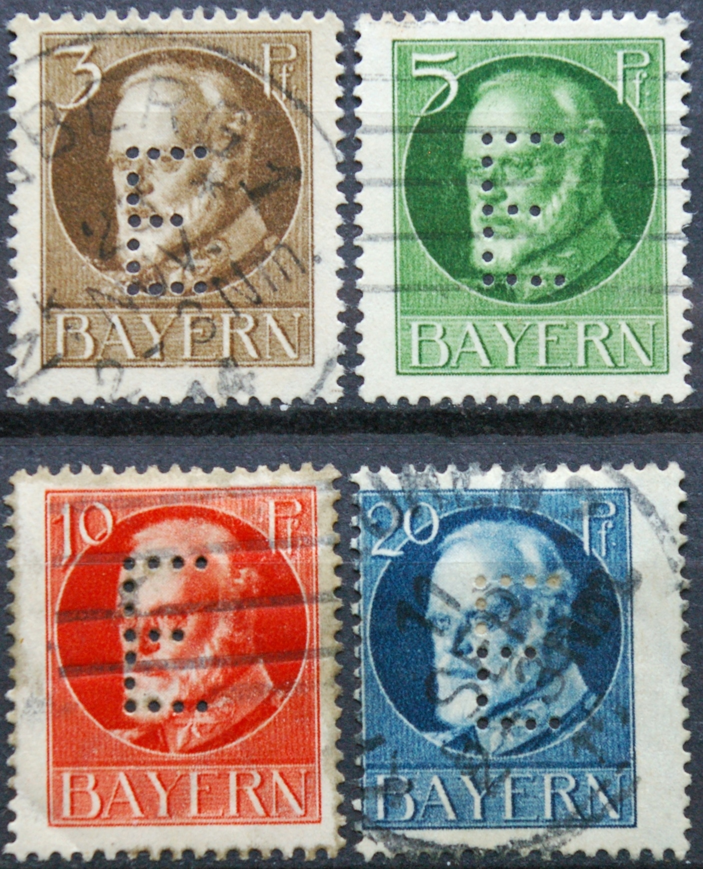 Senoji Vokietija, Bavarija, tarnybiniai, pilna serija MiNr 12-15 Used (O)
