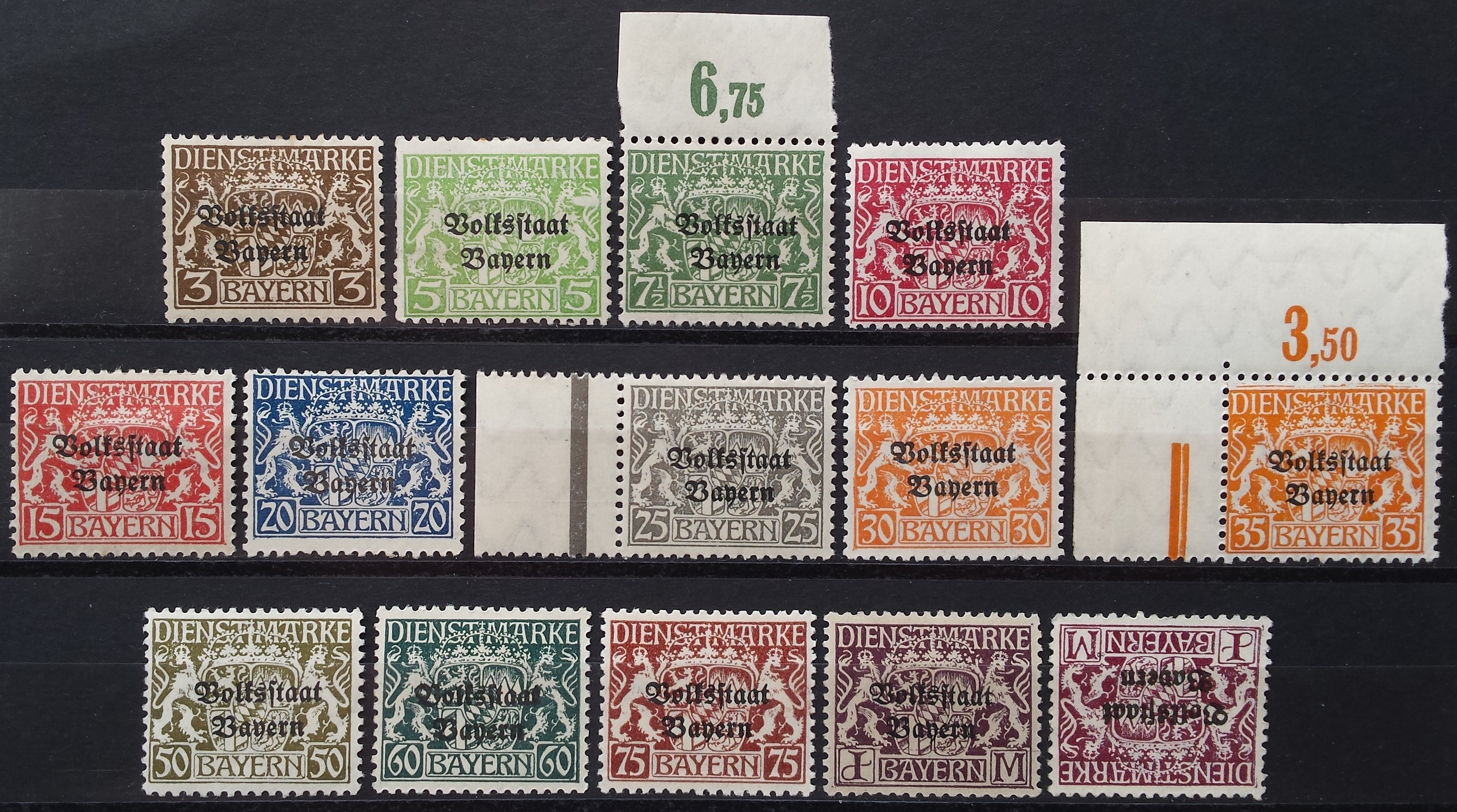Perspausdinti ("Volksstaat Bayern") ankstesnio leidimo ir anksčiau nebuvę apyvartoje ženklai
